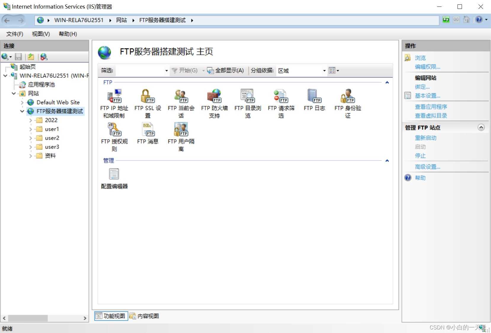 FTP站点搭建完成:如下图所示,您可以根据自己的需要对FTP站点进行设置。