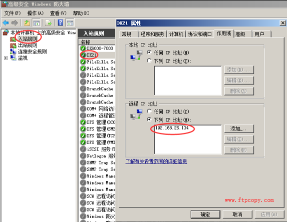 (1)防火墙打开14147端口的“准入”,14147端口为FileZilla Server控制台端口;