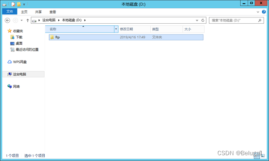 D盘根目录下创建FTP站点主目录ftp文件夹