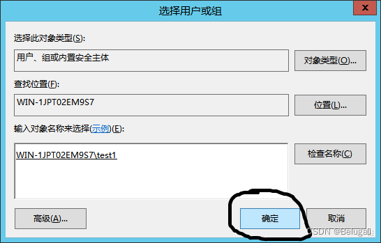 添加test1用户并勾选