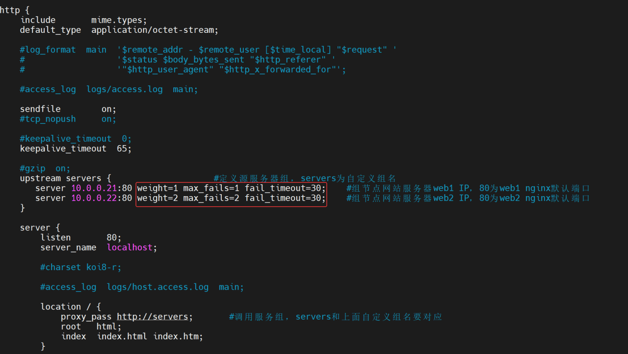 weight为设置服务器权重值,默认是1