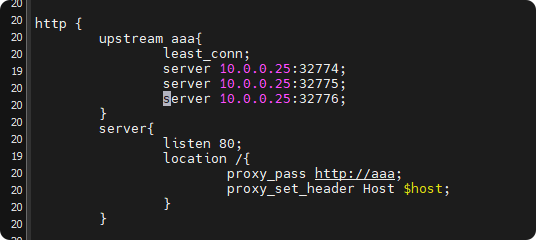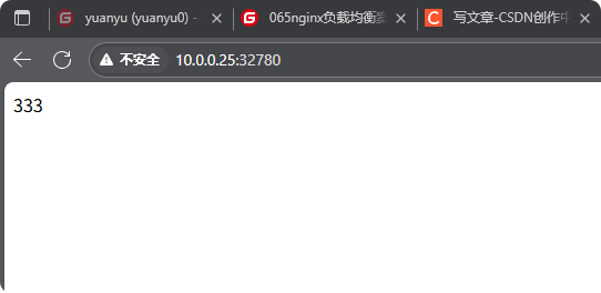 docker run -d -v /opt/index0.html/:/usr/share/nginx/html/index.html -p80 nginx:latest docker run -d -v /opt/index1.html:/usr/share/nginx/html/index.html -p80 nginx:latest docker run -d -v /opt/index2.html:/usr/share/nginx/html/index.html -p80 nginx:latest # 创建三个web端服务 在/opt/目录下创建三个文件 为index0.html,index1.html.index2.html 创建内容分别为 1 22 333 docker run -d -v /root/nginx.conf:/etc/nginx/nginx.conf -p80 nginx:latest 创建nginx 代理端 docker cp 99:/etc/nginx/nginx.conf /root/ (99为容器名) 将web端中nginx的主配置文件 复制下载, 便于后续修改代理端配置文件