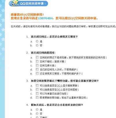 输入你的QQ号码和登录密码,然后填写相关的选项就可以了,不过关闭空间之前要想清楚喔,关闭之后,里面的日志啊,图片就全部没有了喔,不能恢复的;