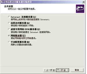 接下来进入“控制面板”,点击“管理工具——路由和远程访问”,选择“网络路由器”(见图四),接着几次“NEXT”后,会有提示“您已经成功地将此服务器设置为路由器”,至此,整个配置完成。