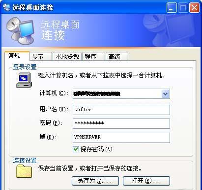 我们还可以在图1界面中的“连接设置”处选择“另存为”按钮,并将远程桌面连接的所有信息保存为一个.rdp文件,这样以后直接运行这个RDP文件就会自动使用登录器打开并连接到事先保存好的计算机地址。(如图2)