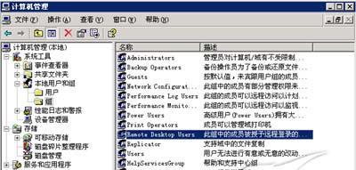 WIN2003解决方法:在WIN2003中的配置相对简单,因为系统内置了一个REMOTE DESKTOP USERS组,(如图7)我们把容许远程访问的用户添加到REMOTE DESKTOP USERS组中即可完成非管理员组的远程桌面访问。