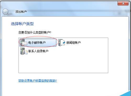 2、点击“账户”后弹出新的对话窗口,点击“添加”按钮,如下图1中标红的位置。点击后弹出新的“添加账户”的对话框,如下图2 ,选中“电子邮件账户”,并且点击“下一步”,按照图2 中标红的位置配置。