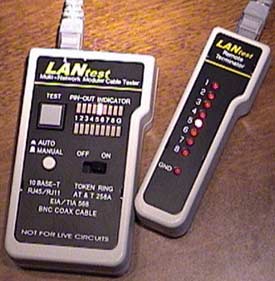每一位网络工程人员都不能缺少测线器(cable tester)。好的测线器将显示出线缆的问题以及RJ-45头是否打好。图A中显示的就是一款测线器。