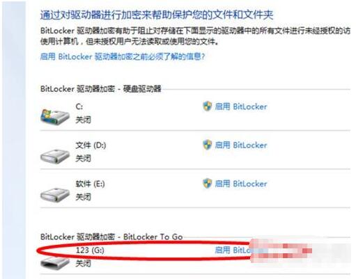 2、找到【Bitlocker驱动器加密】选项,打开它;找到移动设备,点后面的【启用Bitlocker】;