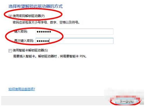3、接着,勾选【使用密码xxxxx】,设置一个密码,点击下一步;