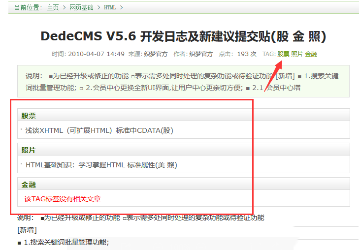 织梦文章页每个tag标签单独输出相关文章内容页模板标签写法: