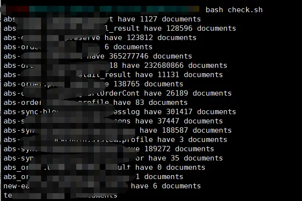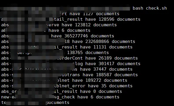 分别在源端和目标端运行脚本,检查迁移完成后业务数据库下文档数量是否一致。
