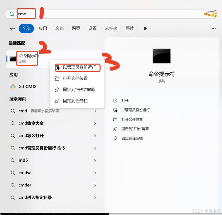 2)、用管理员身份运行cmd