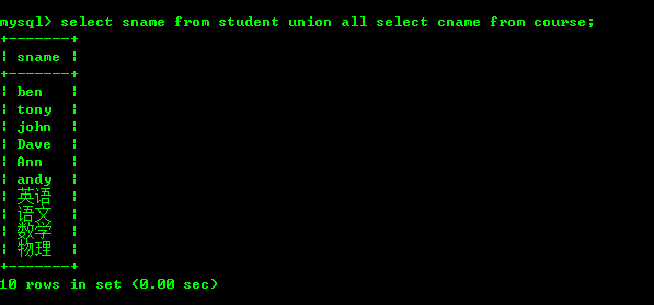 将2个表的数据按照一定规则下查询出来,将结果合并一起显示出来。这个时候我们就可以使用union或者union all。具体语法如下