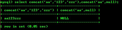 cancat函数:把传入的参数连成一个字符串,任何字符串和null进行拼接的结果都是null,如下图