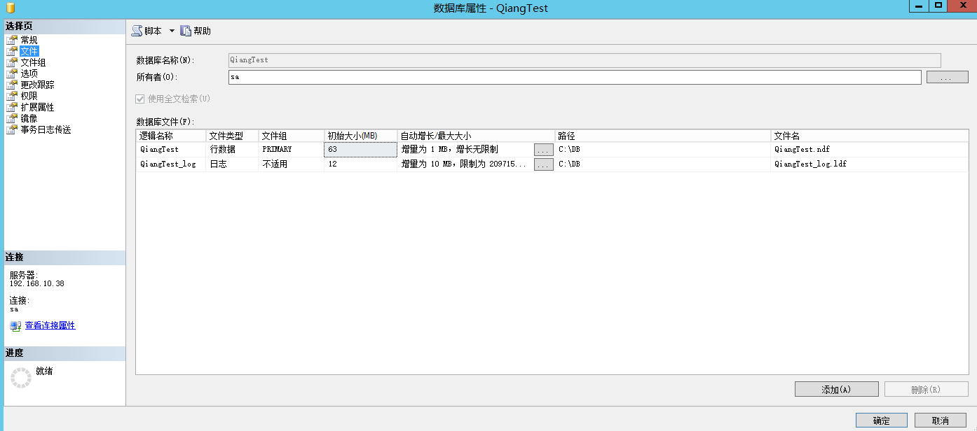 也可以右键数据库 => 属性 => 文件 查看