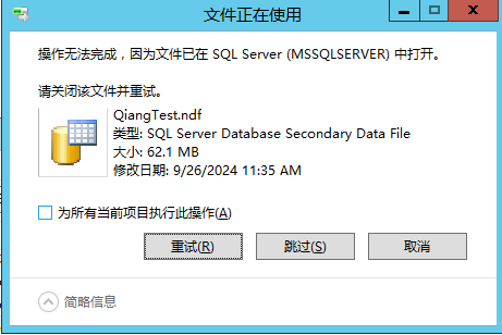因为不脱机会导致转移复制数据库文件时被使用