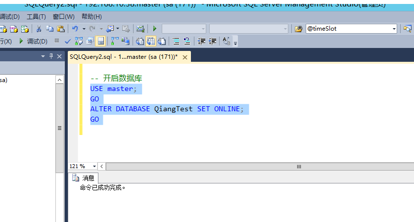 -- 开启数据库 USE master; GO ALTER DATABASE QiangTest SET ONLINE; GO