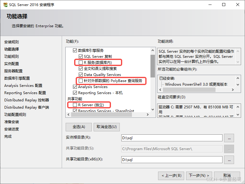 根据需要选择要安装的Enterprise功能