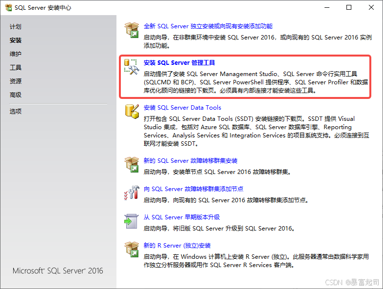 安装完SQL Server2016之后,没有找到SQL Server Management Studio