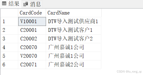 SELECT CardCode,CardName FROM OCRD WHERE CardCode LIKE '______'--一共六条下划线