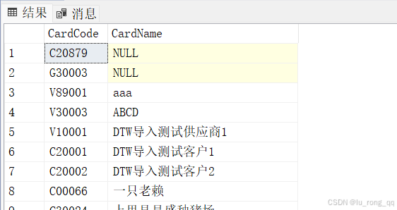 SELECT CardCode,CardName FROM OCRD WHERE CardCode LIKE '[^C]%' --不加[]的话数据库会把^理解为判断字符