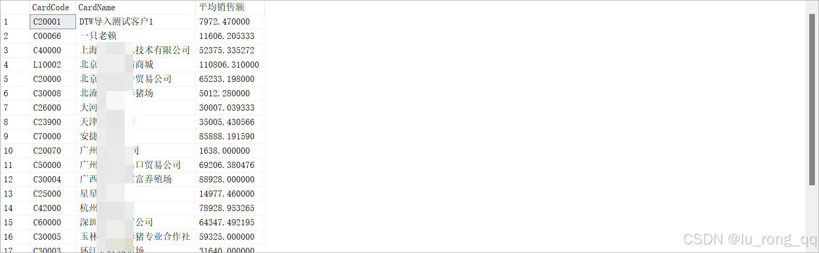 例:查询【销售金额】对平均销售额前十的客户名单