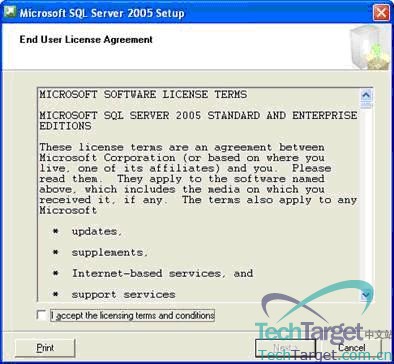 2终端用户许可协议 – 检查终端用户的许可协议(EULA) ,看完后选择 'I accept the licensing terms and conditions' 框。