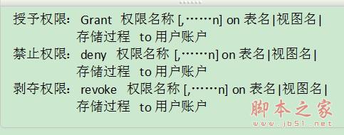 4。管理权限的设置(对象管理器)和管理角色的方法大致相同,在这里我把用的T-SQL语句的方法说一下: