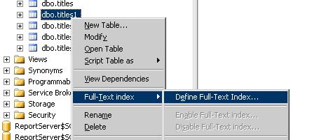 4、接下来就可以定义全文检索了,如下图选择Define Full-Text Index...