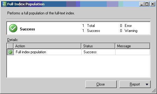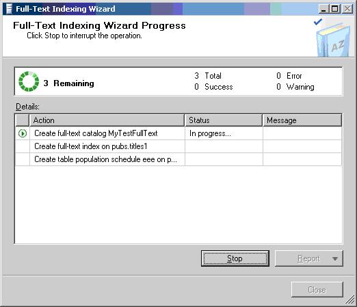 select fulltextcatalogproperty('FT_testData','populateStatus')