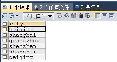 #数据筛选(不等于) SELECT * FROM data1 WHERE city !='beijing';