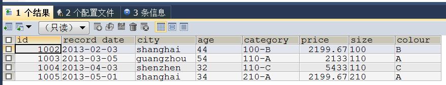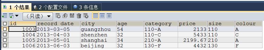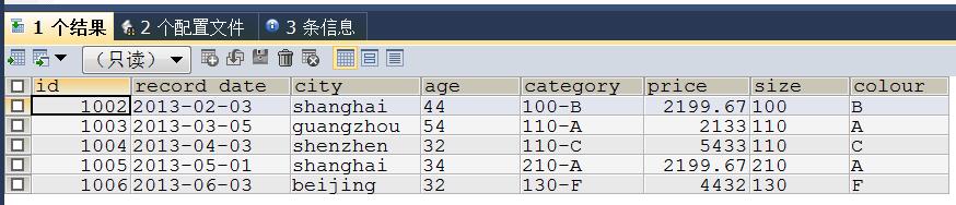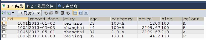 #查看原始数据表 SELECT * FROM data1;