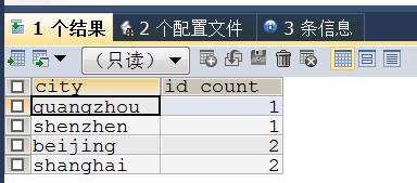 #单列分类汇总 SELECT city,COUNT(id) AS id_count FROM data1 GROUP BY city ORDER BY id_count;
