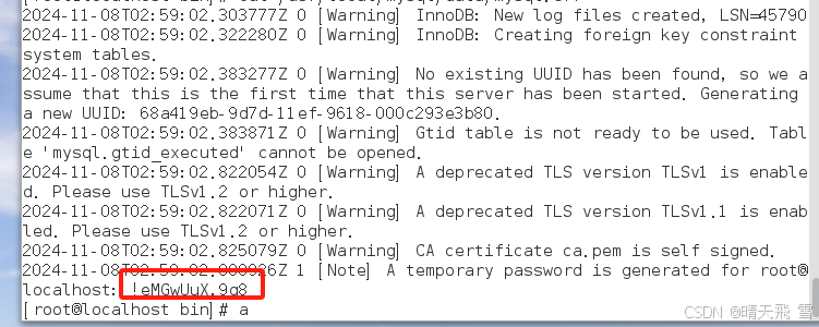 首先登录mysql,前面的那个是随机生成的。在mysql的bin目录下执行