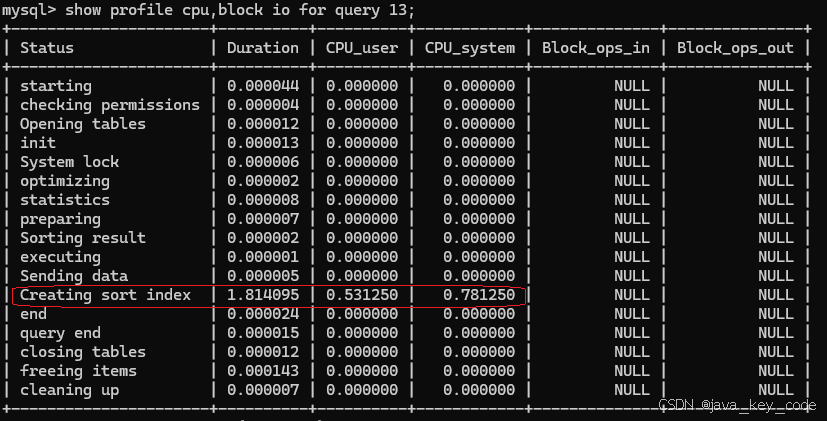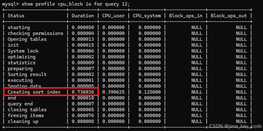 | Sorting result | 对于 SELECT 语句,这与 Creating sort index 类似,但适用于非临时表。 |