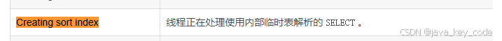 | Creating sort index | 线程正在处理使用内部临时表解析的 SELECT 。 |