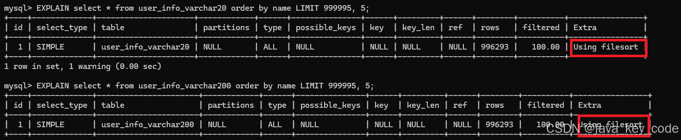 二者不出意外的话应该都使用了filesort排序,查询执行计划
