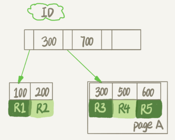 看一下InnoDB中一个索引的示意图: