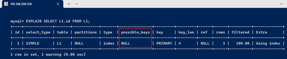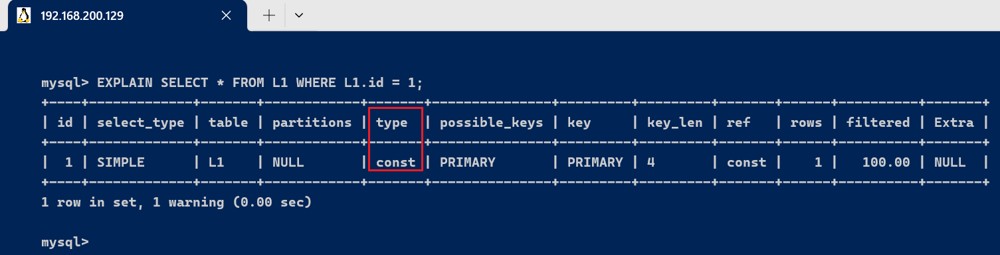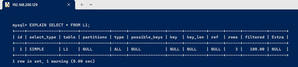 EXPLAIN SELECT * FROM L1 WHERE L1.id='1';