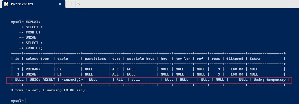 EXPLAIN SELECT * FROM L2 UNION SELECT * FROM L3;
