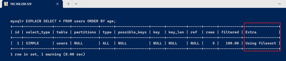 EXPLAIN SELECT * FROM users ORDER BY age;