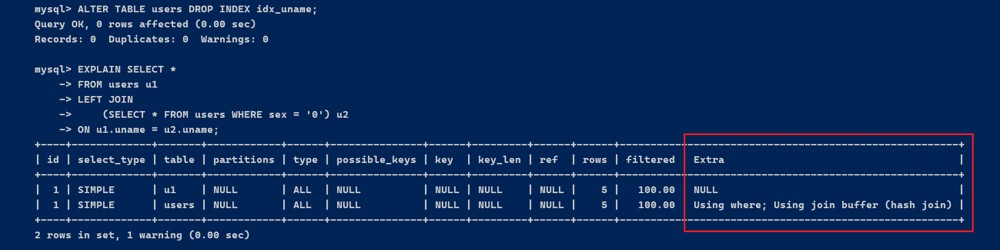 u1)的部分数据块加载到缓冲区,然后与内部表(在本例中是子查询派生表u2)进行匹配。这样可以减少对磁盘的访问次数,提高查询效率。