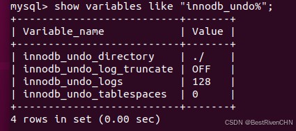 回滚段可以存放在共享表空间以外的地方,即可以设置独立表空间,innodb_undo_directory的默认值为“.”,表示当前InnoDB存储引擎的目录。