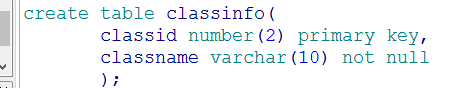 create table classinfo( classid number(2) primary key, classname varchar(10) not null );