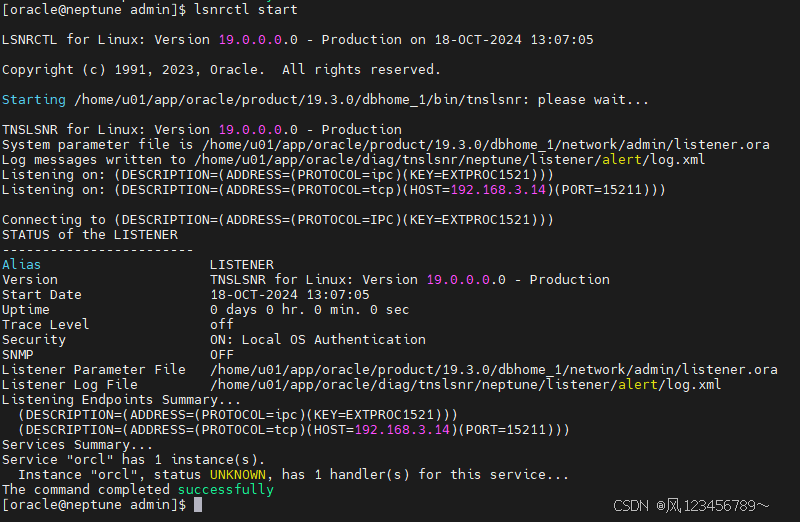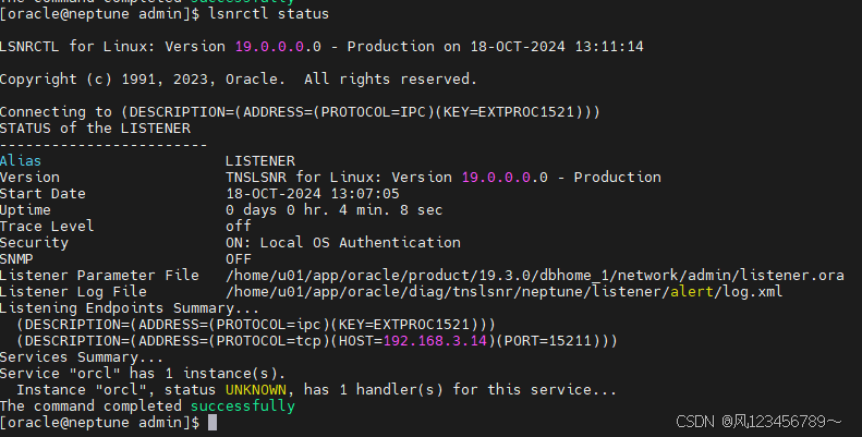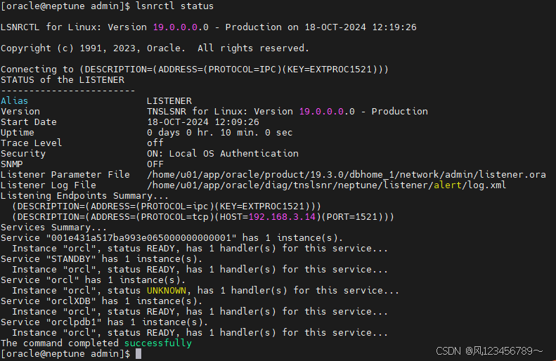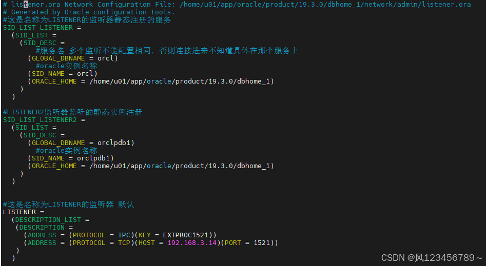 命令: [oracle@neptune ~]$ cd $ORACLE_HOME/network/admin [oracle@neptune admin]$ pwd /home/u01/app/oracle/product/19.3.0/dbhome_1/network/admin [oracle@neptune admin]$ vim listener.ora