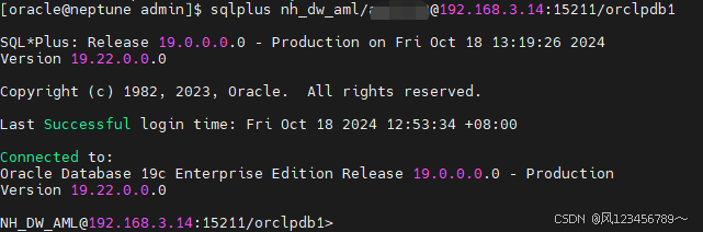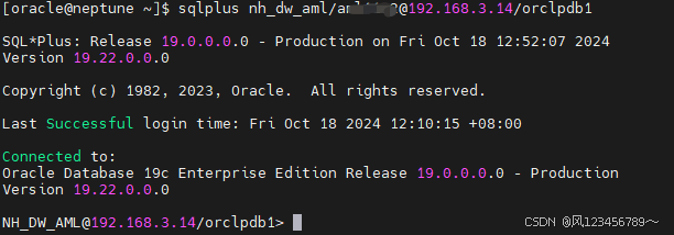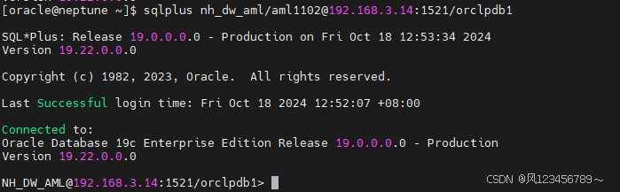 sqlplus nh_dw_aml/xxxx@192.168.3.14/orclpdb1 sqlplus nh_dw_aml/xxxx@192.168.3.14:1521/orclpdb1