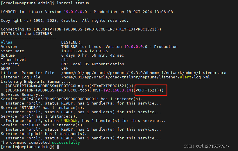 此时,lsnrctl status 看到的监听 还是1521