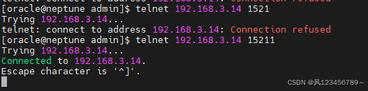 telnet 192.168.3.14 1521 telnet 192.168.3.14 15211