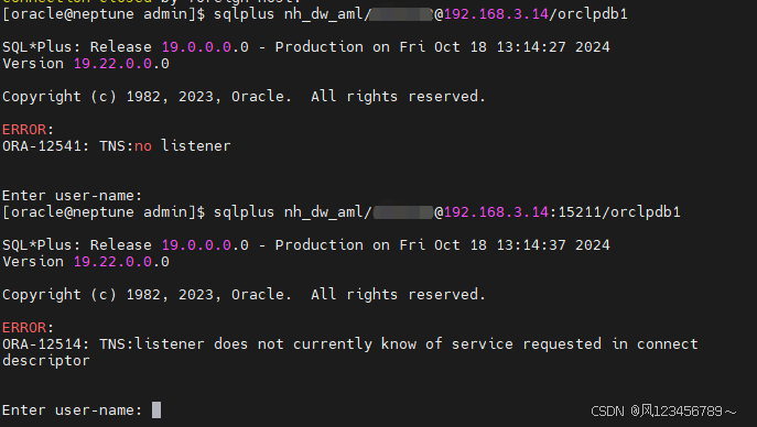 sqlplus nh_dw_aml/xxxx@192.168.3.14/orclpdb1 sqlplus nh_dw_aml/xxxx@192.168.3.14:15211/orclpdb1